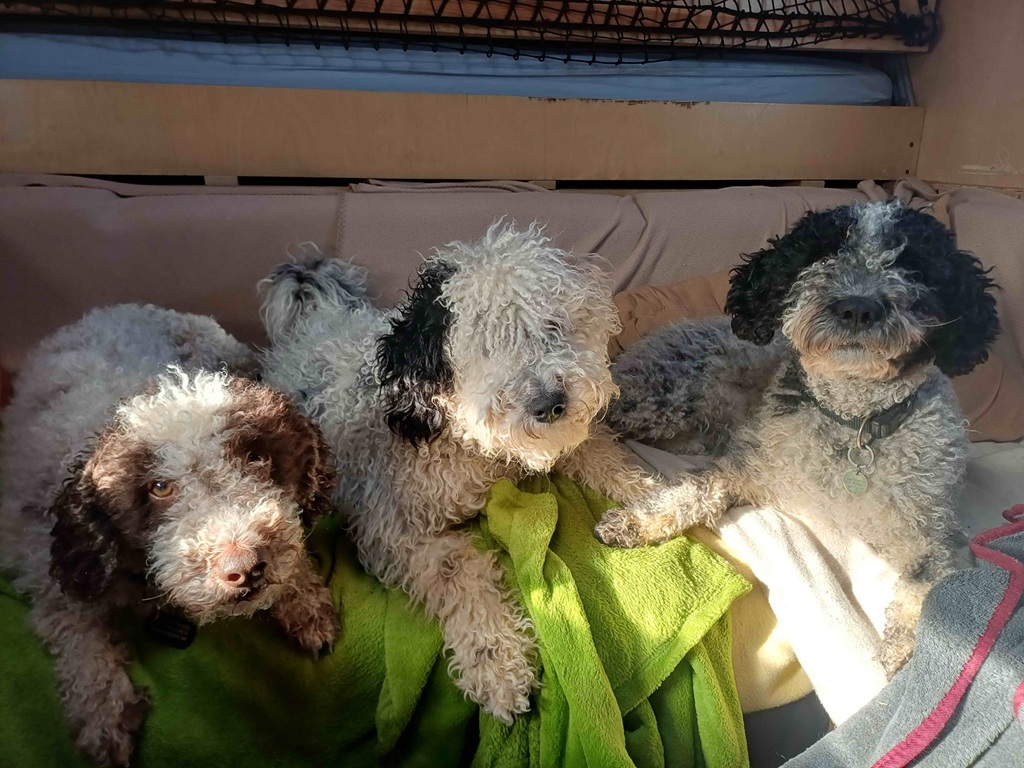 Und so saßen sie später zufrieden im Womo und verspeisten fröhlich den Rest des Mittagessens, das wir für sie eingepackt hatten :o)