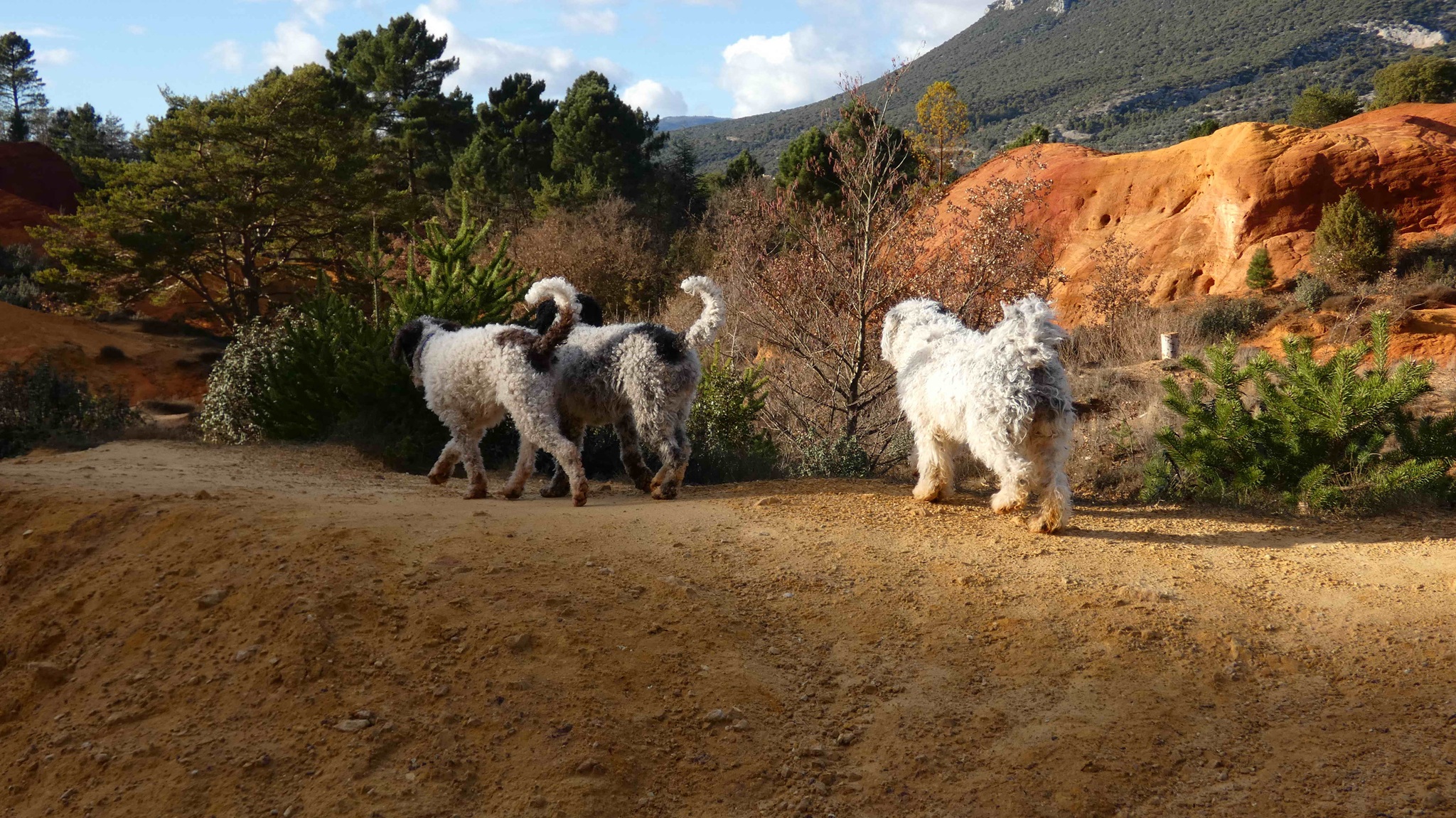 Wir genießen die Natur im Luberon. An die Schüsse haben wir uns schon gewöhnt, wenn wir spazieren gehen. Oft schon früh morgens sind die Jäger zu hören. Wir wechseln ein paar nette Worte und jeder zieht seines Weges. Einige der Jagdhunde versuchen in unser WoMo zu springen. Die Jagdhunde sind sehr freundlich und gutmütig. Jagdhunde in Frankreich wechseln oft die Autos und werden von verschiedenen Jägern transportiert. Das hängt eng mit der traditionellen Form der Jagd zusammen. Bei der Hetzjagd werden oft große Meuten eingesetzt. Diese Hunde gehören nicht zwingend einem einzelnen Jäger, sondern einer "Equipage" (einer Jagdgemeinschaft).