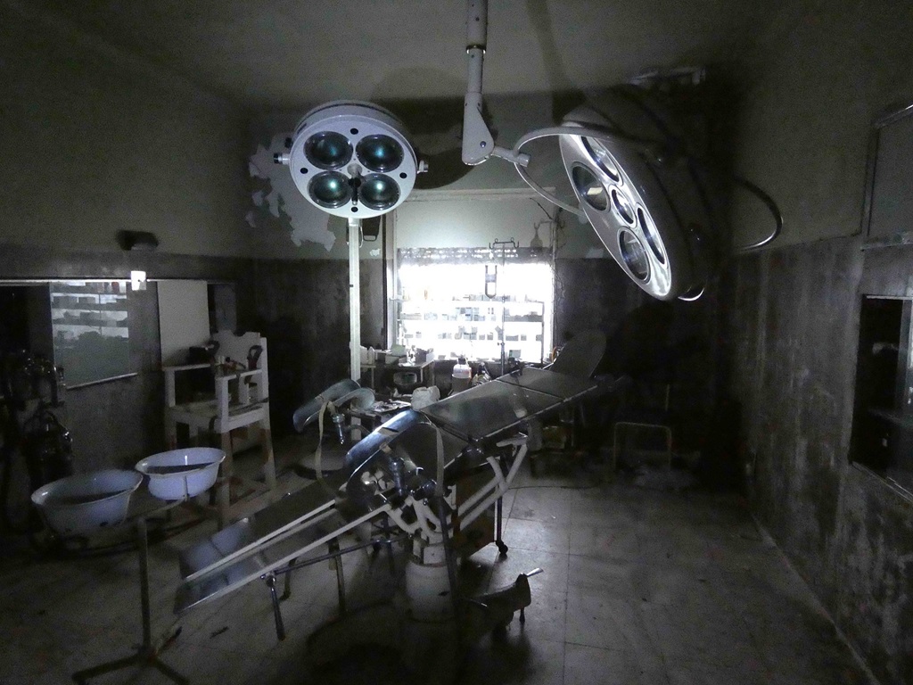 Schon als wir um die Ecke biegen, bemerken wir den typischen Krankenhausgeruch. Nur ganz leicht, aber unverwechselbar. Wie kann das sein, nach all den Jahren des Leerstandes, denken wir.
