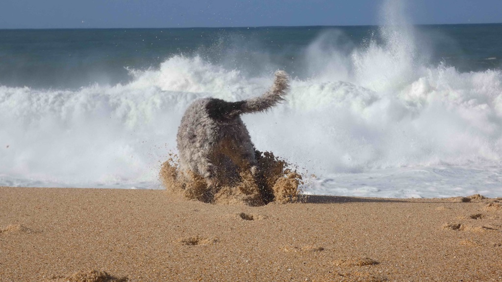 Unsere Route hat uns überwiegend entlang der Küste geführt und da punktet Portugal mit seinen umwerfenden Stränden. Selten treffen wir bei unseren Spanziergängen auf andere. Das genießen die Hunde genau wie wir. Um diese Jahreszeit können sie an den Stränden frei herumtoben. Und auch die Sonnenuntergänge sind bombastisch.